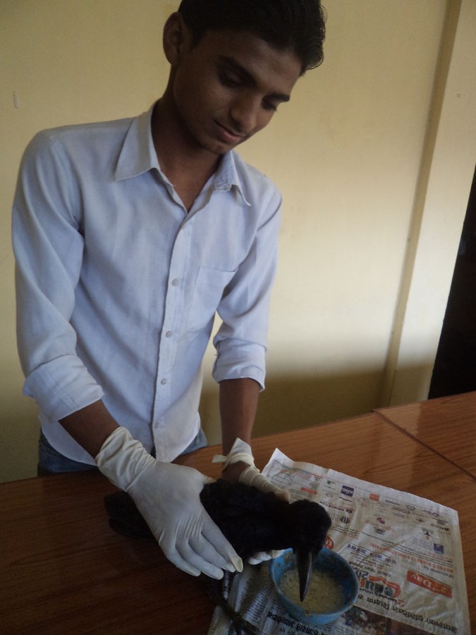 MWT office and checked its health, it was not able to move or open its wing by his own and its left palm was completely damaged as some of predator’s attack or accident might have happened. When our team fed with food and water he started to move & is trying to be active.We are trying our level best to save its life though we are not sure about the curing of left leg.