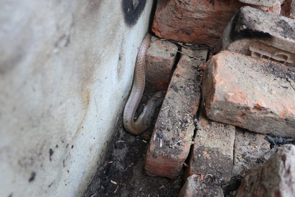 An adult Common Cobra has been successfully rescued from Ghodghas Ward No. 9 nearly about 12:00 pm .We got informed after as locals spotted it while shifting bricks. The situation was under control though, kerosene was poured near the snake in an attempt to chase it away. Our team members, Subodh Acharya and Gautam Mandal, safely rescued and released it into its natural habitat.