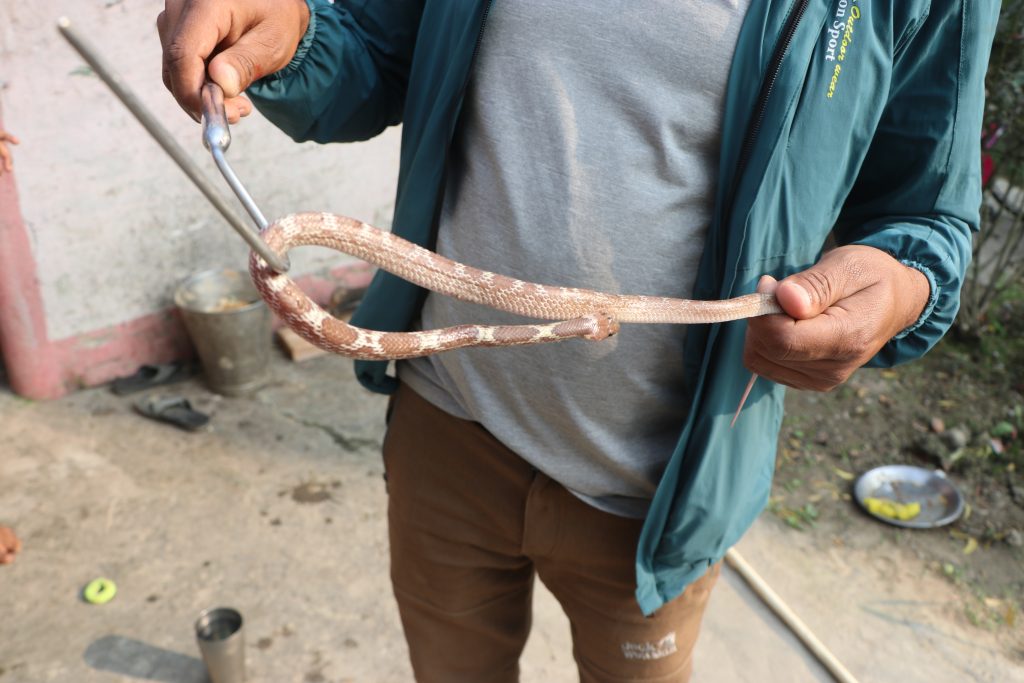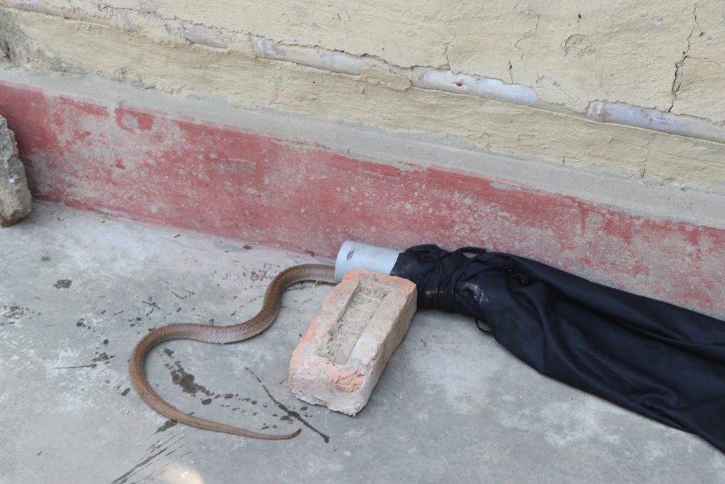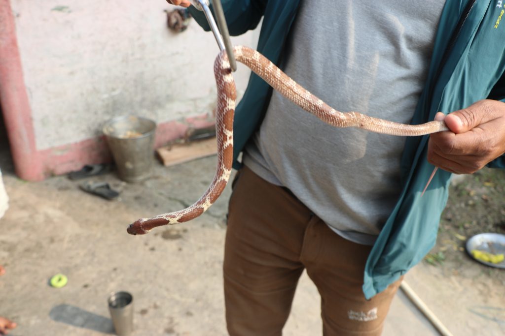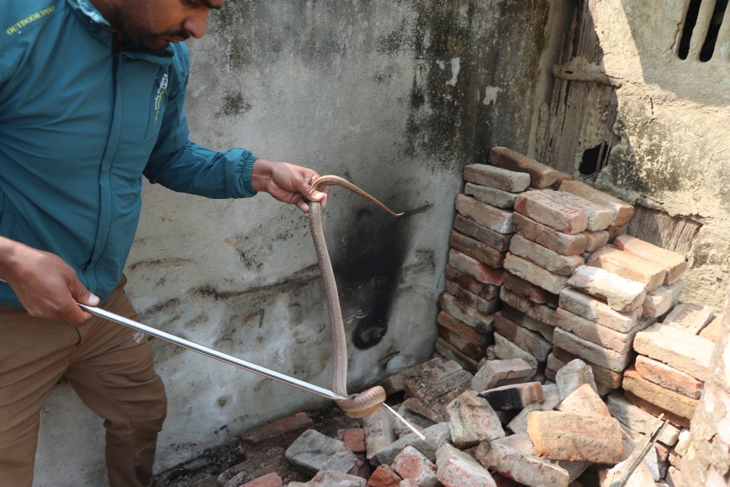 An adult common cobra has been successfully rescued from Janakpurdham (ramanand Chowk) nearly about 4:00 p.m. the snake was inside bedroom and the informer was trying to get it into a plastic jar as we informed our active member Mr Subodh Acharya went to the sport and did the rescue successfully.