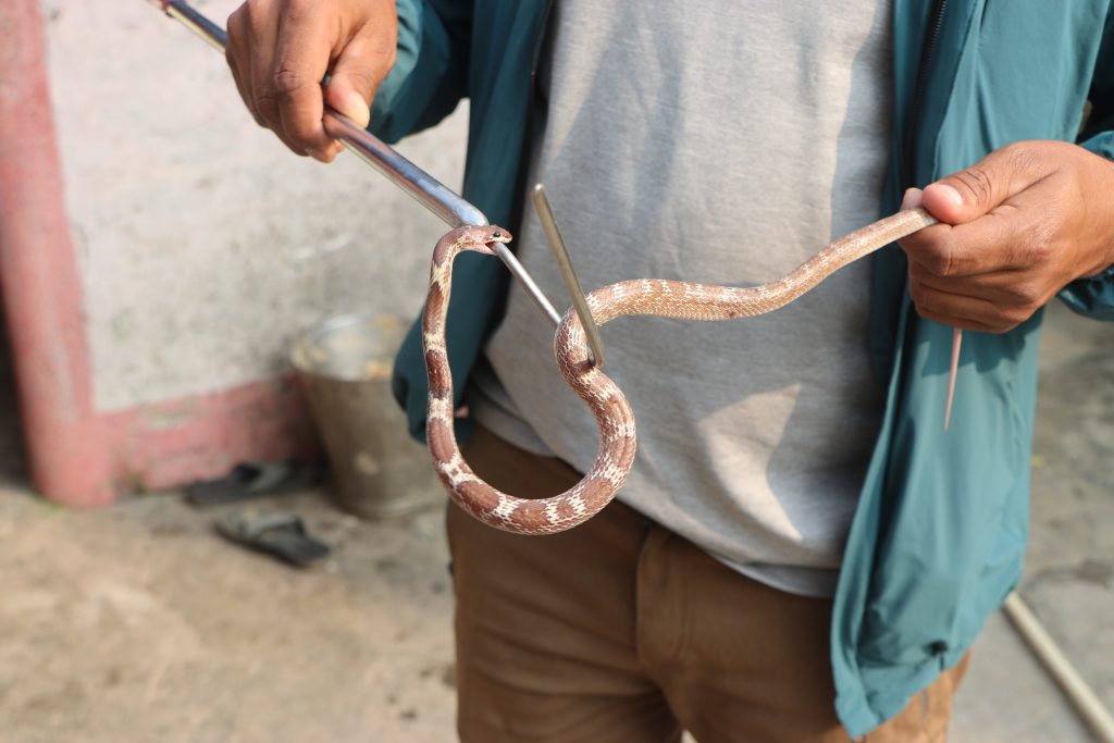 Our team received the information at around 3:20 PM, and Mr. Subodh Acharya along with Gautam Mandal successfully carried out the rescue. The snake was safely removed from the pipe and later released into its natural habitat. Snakes are important for nature, so let’s protect them!